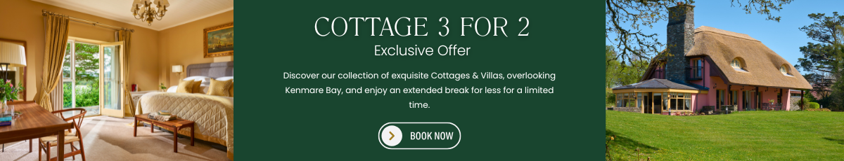 Experience an enchanting 3 night retreat at Sheen Falls Lodge with a 50% reduction on the third night of your stay. Included in this package: • 3 nights in a luxurious, spacious room overlooking Kenmare Bay or Sheen Waterfall. • Full Irish breakfast each morning. • 1 evening of gourmet dining at The Falls Restaurant. • 1 evening of relax...